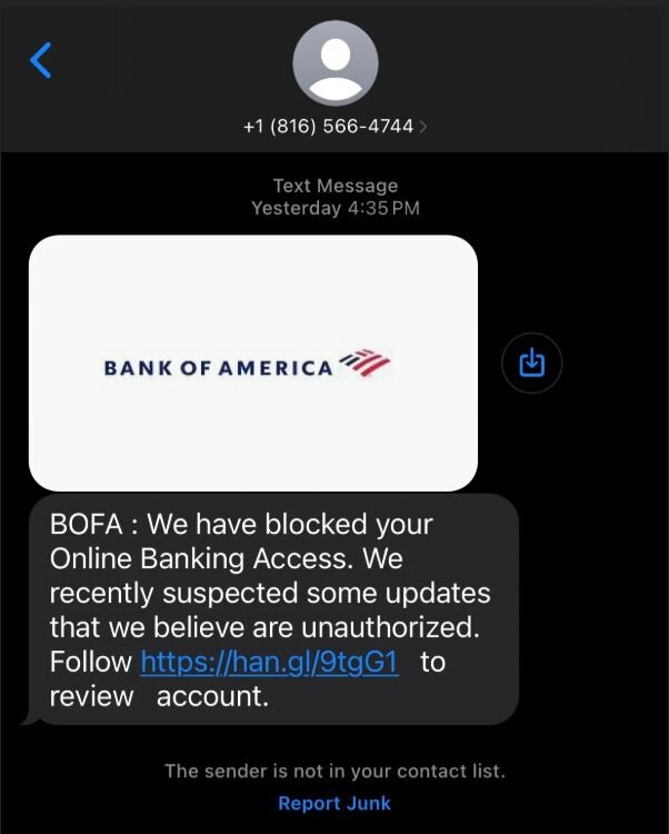 Smishing example. Don't let the use of a legit logo fool you.